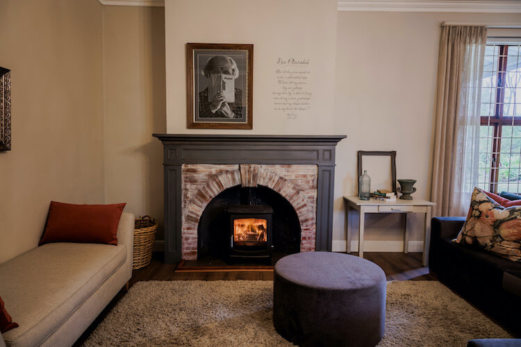 The lounge features an old (untuned) piano and a fireplace watched over by one of South Africa’s most beloved poets, Uys Krige. Born on this farm, he penned the poignant Die Plaashek—The Farm Gate—on returning from WWII.